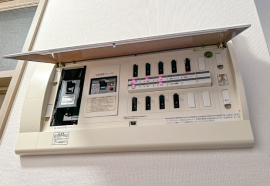 最新タイプの分電盤は、各回路に専用の漏電ブレーカーが搭載されており、異常があった場合も即座に遮断。火災や感電事故のリスクを軽減します。